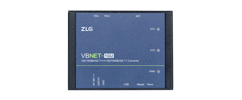 ZLG VBNET-1GU ตัวแปลงอีเธอร์เน็ตสำหรับยานยนต์ 100/1000BASE-T1 เป็น 100/1000BASE-TX บรอดรีช