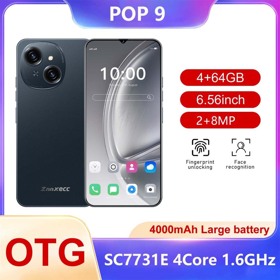 สมาร์ทโฟน ZNNXECC POP9 4+64GB หน้าจอ HD ขายตรงจากโรงงาน รองรับเครือข่าย 3G ครอบคลุมทุกเครือข่าย พร้อมชุดเคสและฟิล์มกันรอยยอดนิยม