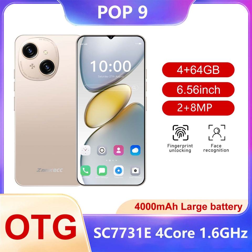 ZNNXECC POP9 สมาร์ทโฟน 4G หน่วยความจำขนาดใหญ่ 4GB+64GB รองรับคลื่นความถี่ทั่วโลก หน้าจอ HD ภาษาอังกฤษ โปรโมชั่นราคาถูก