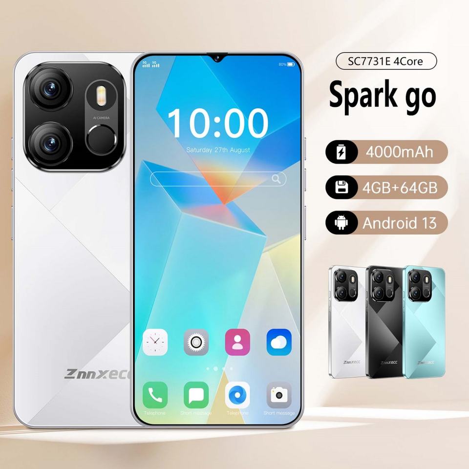 ZNNXECC Spark Go 4+64GB หน้าจอ 6.6 นิ้ว HD 4G รองรับซิมคู่ ระบบปฏิบัติการ Android 13 ชาร์จเร็ว แบตเตอรี่ 4000mAh รองรับภาษาสเปน หลายภาษา โทรศัพท์ขายดีทั่วโลก