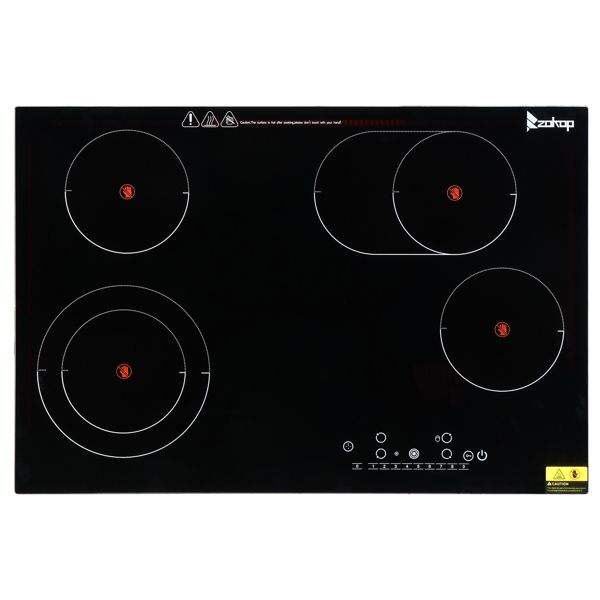 Zokop 30 "เตาเซรามิกไฟฟ้าสีดำ220V 7200W 4เตาสี่เหลี่ยมป้องกันสนิมสเปรย์เหล็กเคลือบผิวสัมผัสด้านล่าง