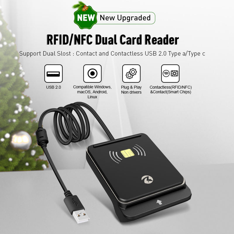 Zoweetek 2 in 1 USB เครื่องอ่านการ์ด, เครื่องอ่านอ่านชิปการ์ด ISO 7816 Contactless NFC เครื่องอ่านการ์ดควบคุมการเข้าถึง