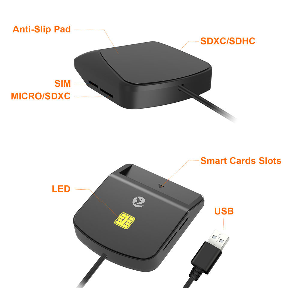 ZOWEETEK เครื่องอ่านการ์ด USB ออลอินวัน รองรับ SD และ TF เมมโมรี่การ์ด พร้อมฟังก์ชั่นอ่านและเขียนการ์ดชิปอัจฉริยะ ISO 7816 สำหรับคอมพิวเตอร์และแล็ปท็อป