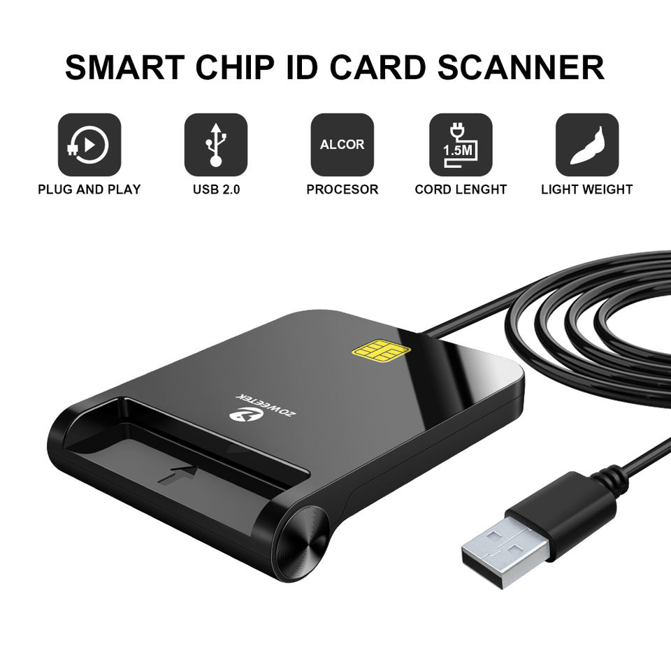 ZOWEETEK เครื่องอ่านบัตรสมาร์ทการ์ดแบบชิป USB 2.0 ช่องเดียว รุ่นขายดีที่สุด เครื่องอ่านและเขียนบัตรเครดิต