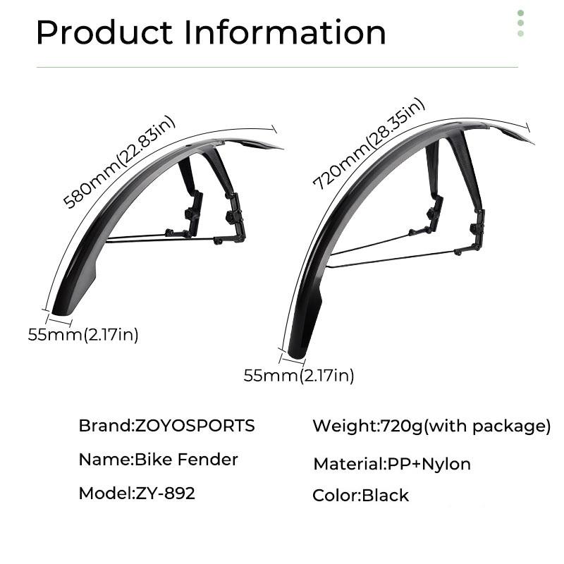 บังโคลนจักรยาน ZOYOSPORTS บังโคลนจักรยานทำจากพลาสติก PP นุ่ม แข็งแรง ทนทาน เหมาะสำหรับจักรยานเสือภูเขา ขนาด 700C อุปกรณ์ป้องกัน