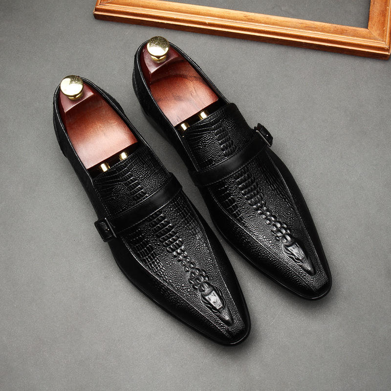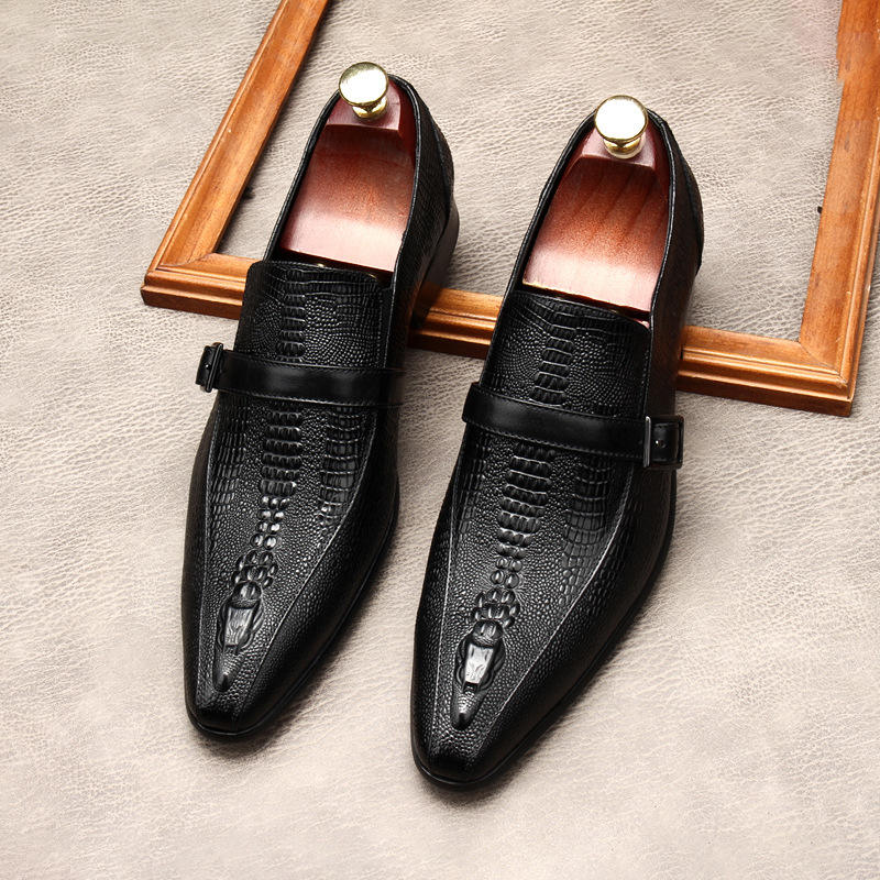 รองเท้าหนังผู้ชาย ZP202863 ดีไซน์สั่งทำพิเศษ ระบายอากาศได้ดี ลายหนังจระเข้ หัวแหลม รองเท้าทางการสำหรับผู้ชาย ใส่ทำงานในออฟฟิศ