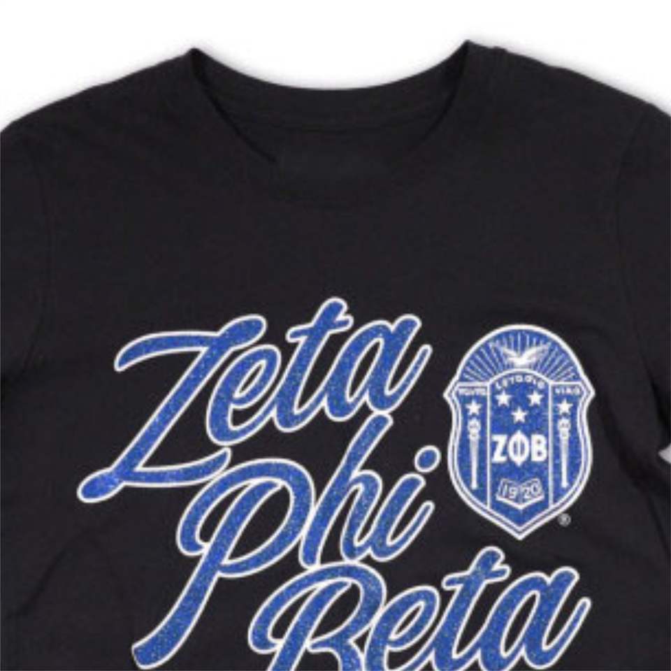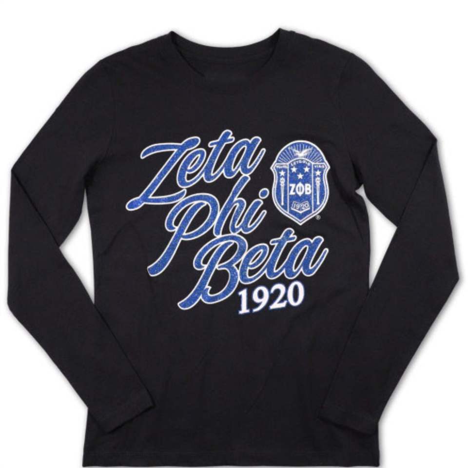 Zpb เสื้อ100% แขนยาวผ้าฝ้ายสีดำ Zeta phi Beta พร้อมด้วยลายพิมพ์ดิจิตอลแวววาวป้องกันตัวอักษรกรีกปี