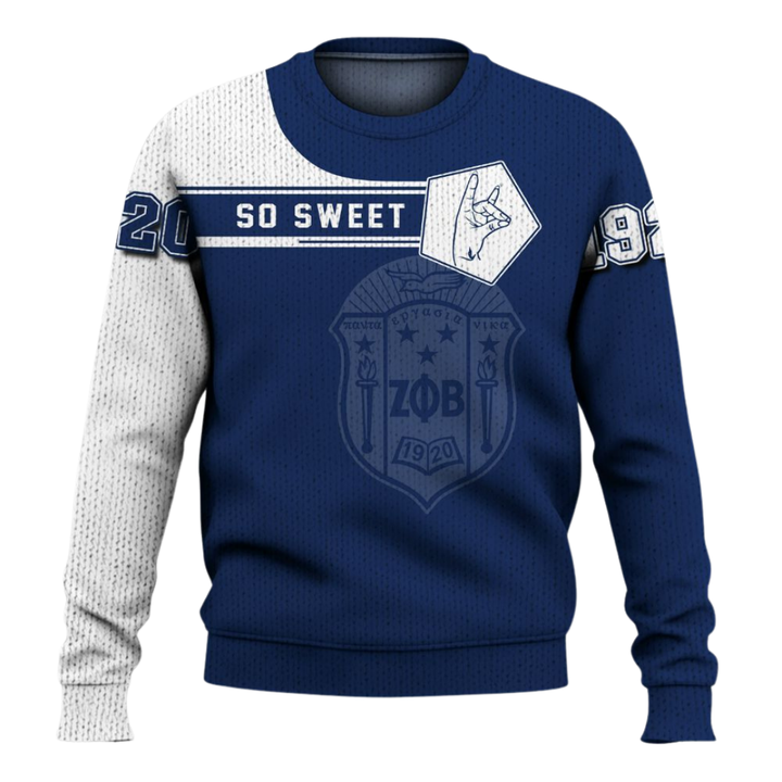 ZPhiB Divine Nine Sorority Sweater 1920 Zeta Phi Beta Knit Blue White Chenille Letters Greek Life Premium Apparel