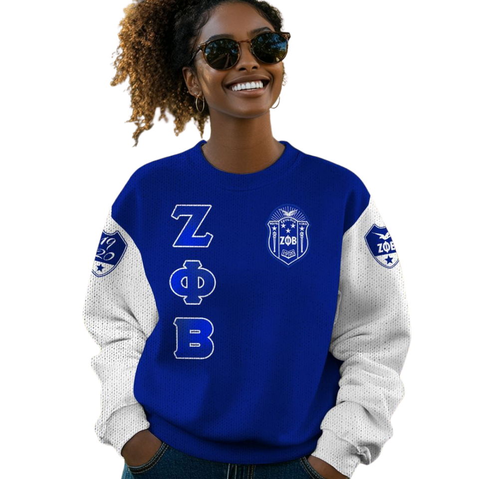 Zphib เสื้อสเวตเตอร์ถักสำหรับ1920สโมสรเสื้อสเวตเตอร์ถักลาย Zeta phi เบต้าสีน้ำเงินขาวกรีกเสื้อชูชีพ chenille Divine