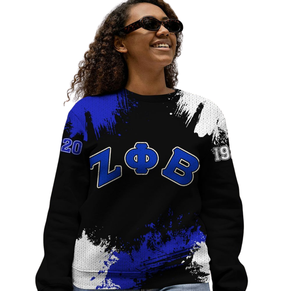 Zphib เสื้อสเวตเตอร์ถักแบบ1920 Zphi รุ่นเบต้าลายชีวิตสีฟ้าผ้ากำมะหยี่สีขาวสำหรับผู้หญิง