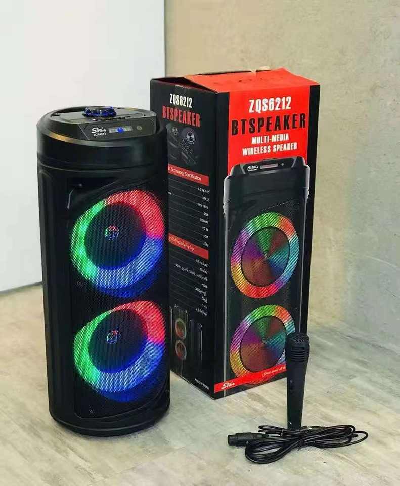 ลำโพงบลูทูธไร้สาย ZQS6212 รุ่นใหม่ พร้อมไฟ LED วูฟเฟอร์คู่ขนาด 10 นิ้ว พกพาสะดวก เหมาะสำหรับงานปาร์ตี้ดิสโก้