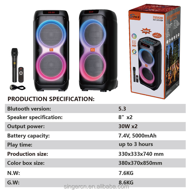ลำโพงพกพา ZQS8280 สำหรับดีเจ เชื่อมต่อบลูทูธ เสียงทรงพลัง เหมาะสำหรับใช้งานกลางแจ้ง พร้อมไฟ RGB LED ในตัว ไมโครโฟน และรีโมทคอนโทรล