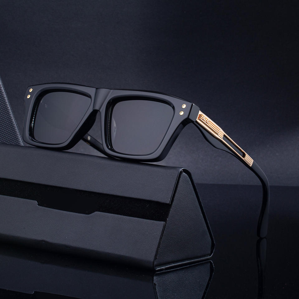 แว่นกันแดดทรงสี่เหลี่ยม ZS98503 สำหรับผู้ชาย สีดำ วัสดุพลาสติกและโลหะ เลนส์ PC ป้องกันรังสียูวี 400 ป้องกันแสงแดดสำหรับกิจกรรมกลางแจ้ง