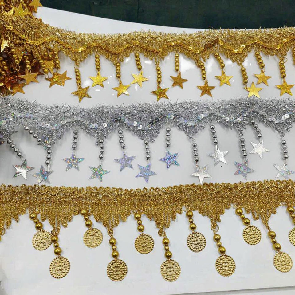 ผ้าลูกไม้ถักโครเชต์ลายเหรียญ ZSY DIY ประดับเลื่อม ไม่ยืดหยุ่น โพลีเอสเตอร์ 100% ขนาด 45 มม. สีทอง สีเงิน แต่งขอบด้วยพู่ห้อยแบบเลเซอร์