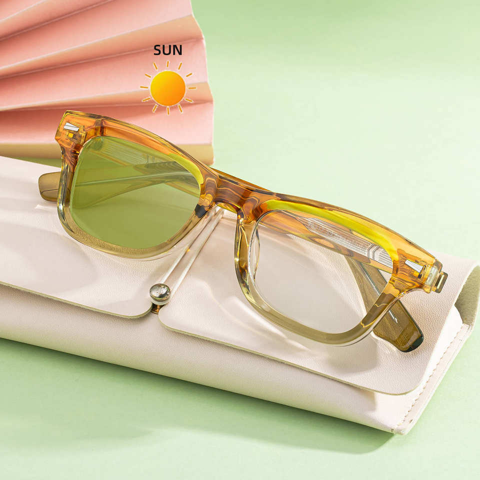 แว่นกันแดดเปลี่ยนสีรุ่น ZT-99317 สำหรับผู้หญิง ป้องกันรังสียูวี 400 กรอบพลาสติกผสมโลหะ ทรงเหลี่ยม ขนาดเล็ก เลนส์ป้องกันแสงแดดระดับ 2