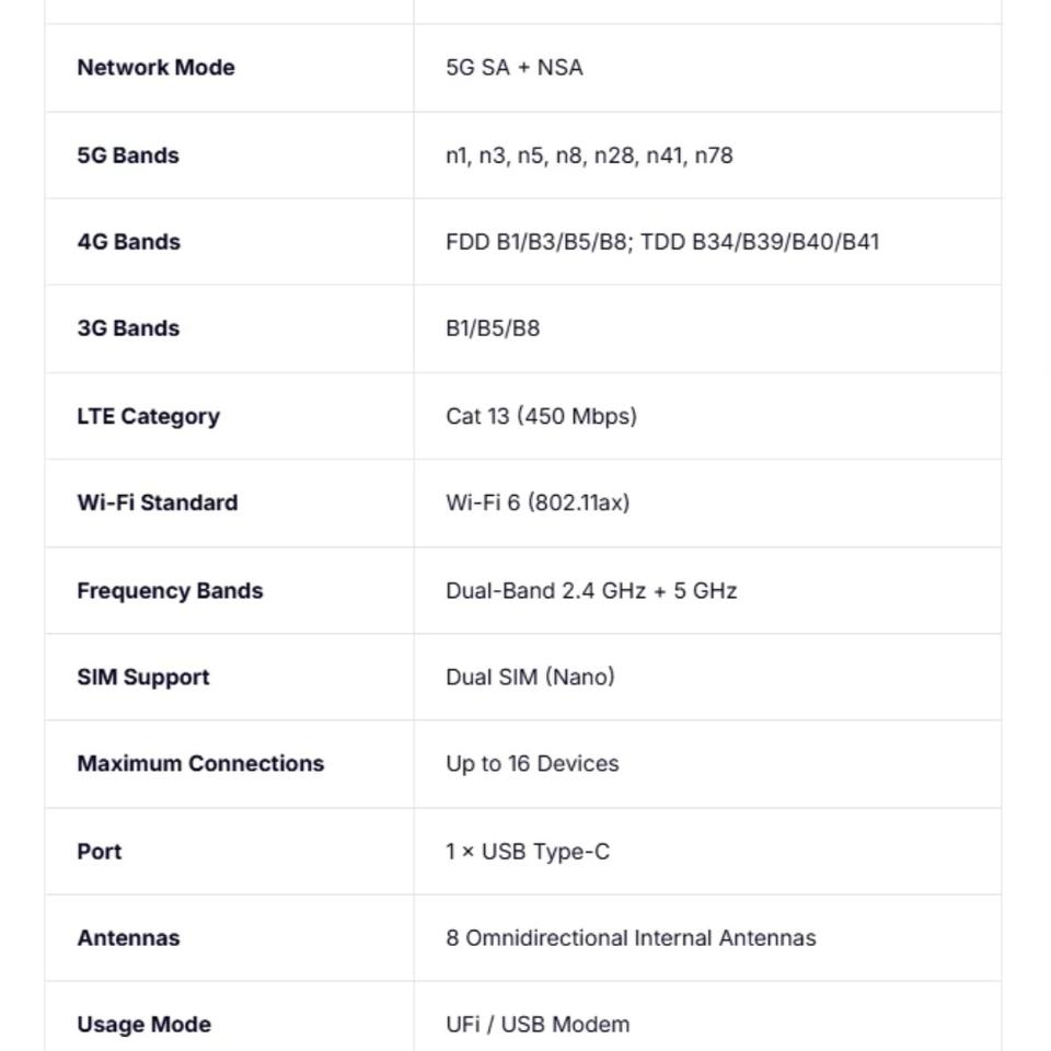 ZTE F50 Pro Wi-Fi แบบพกพา5G การสลับเครือข่ายคู่และ Wi-Fi 6
