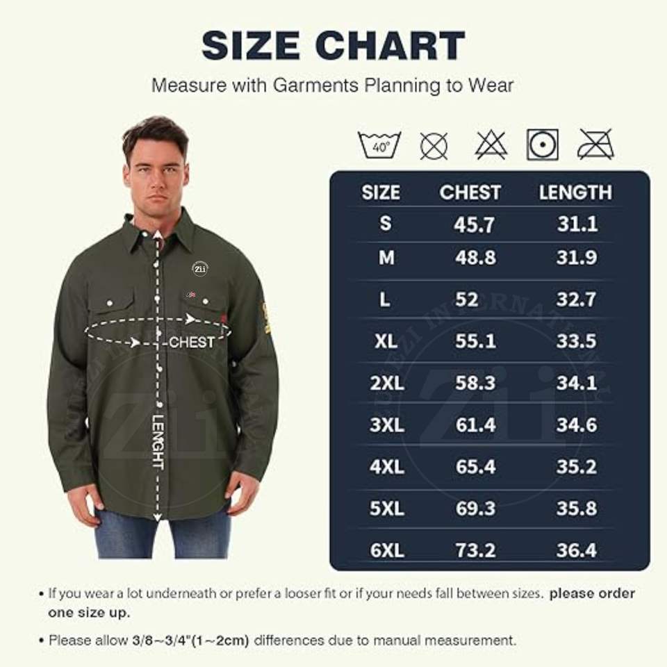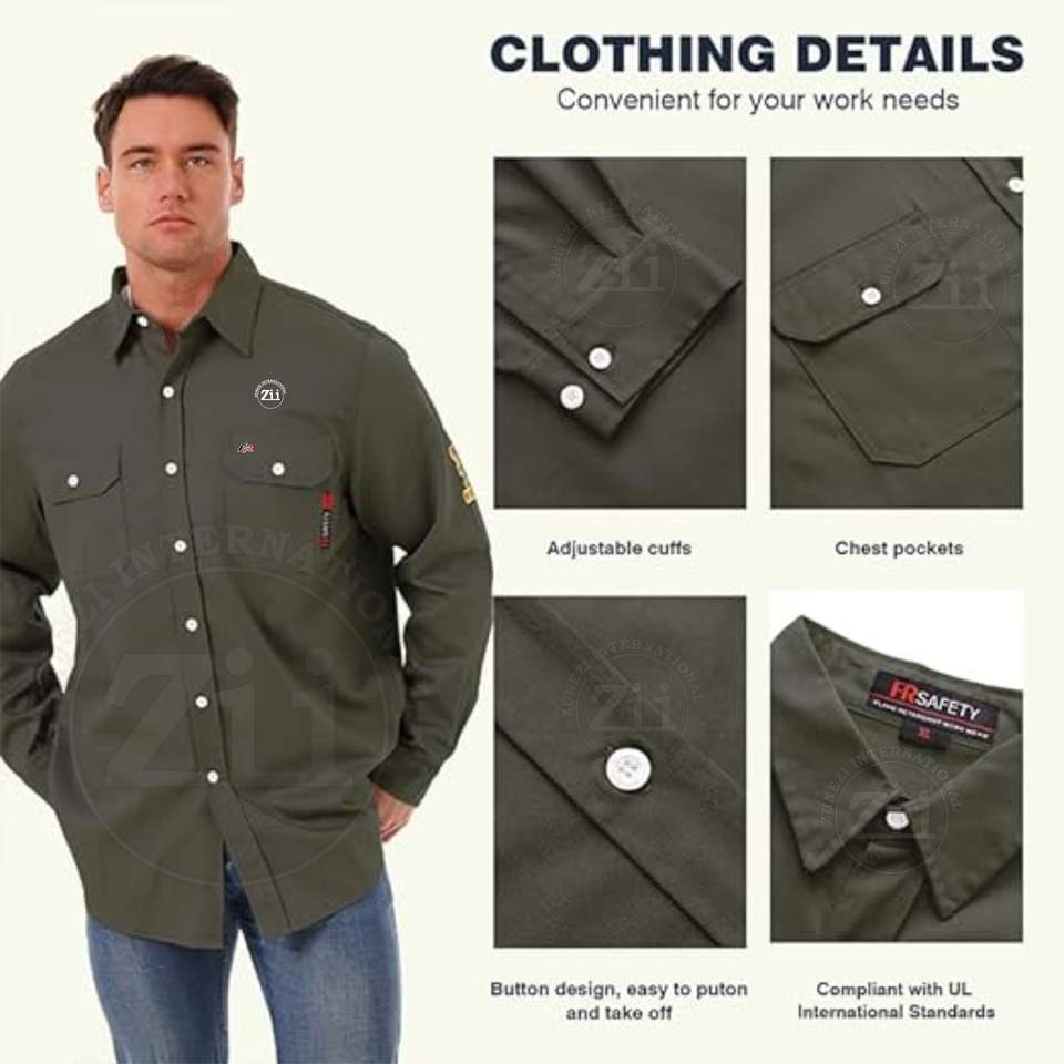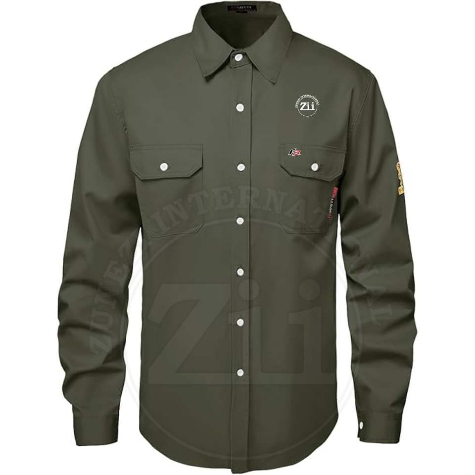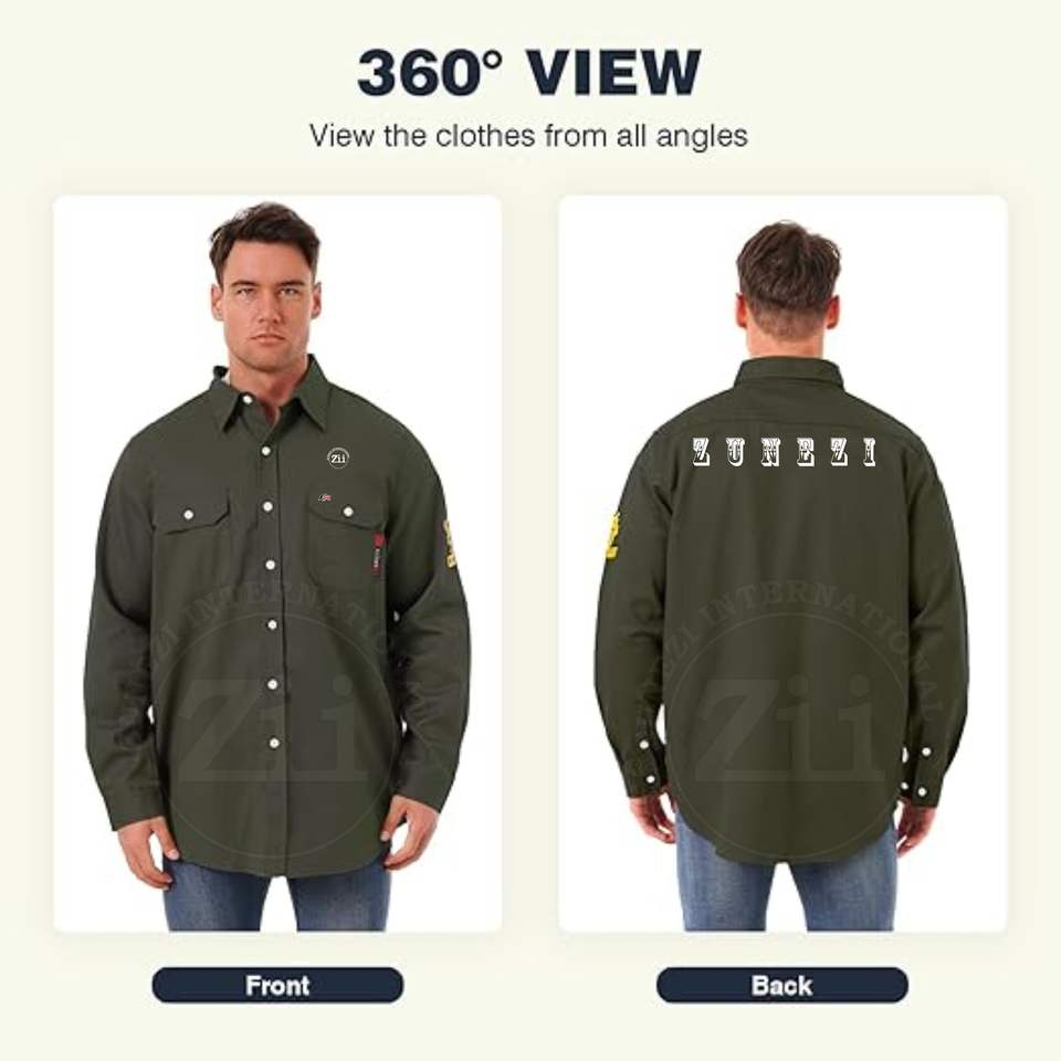 เสื้อเชิ้ตทำงานเชื่อมโลหะ ZUNEZI ZI-7080 ทนไฟ ผ้าฝ้าย 100% เสื้อช่างเชื่อม FR ป้องกันความร้อน ระดับป้องกันความร้อน 500 องศาเซลเซียส