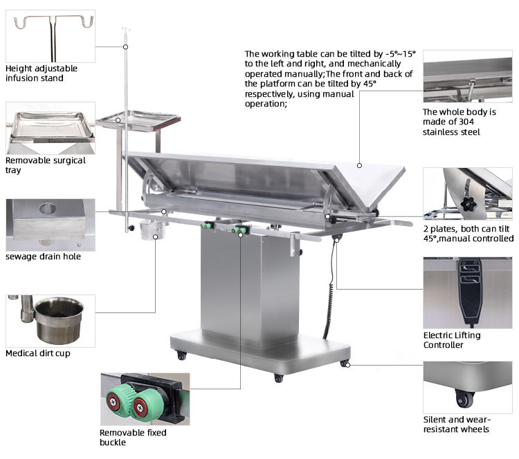 โต๊ะ ZY-002ไฟฟ้าไฮดรอลิกสำหรับผ่าตัดสัตวแพทย์เตียงสัตวแพทย์โต๊ะสอบสัตว์