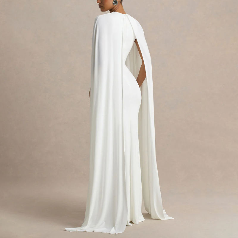 ZYHT 75156 ชุดเดรสยาวมุสลิมแบบเรียบง่ายสำหรับผู้หญิง สีขาว ตกแต่งผ้าคลุมไหล่ สามารถปรับแต่งได้ตามต้องการจากผู้ผลิต