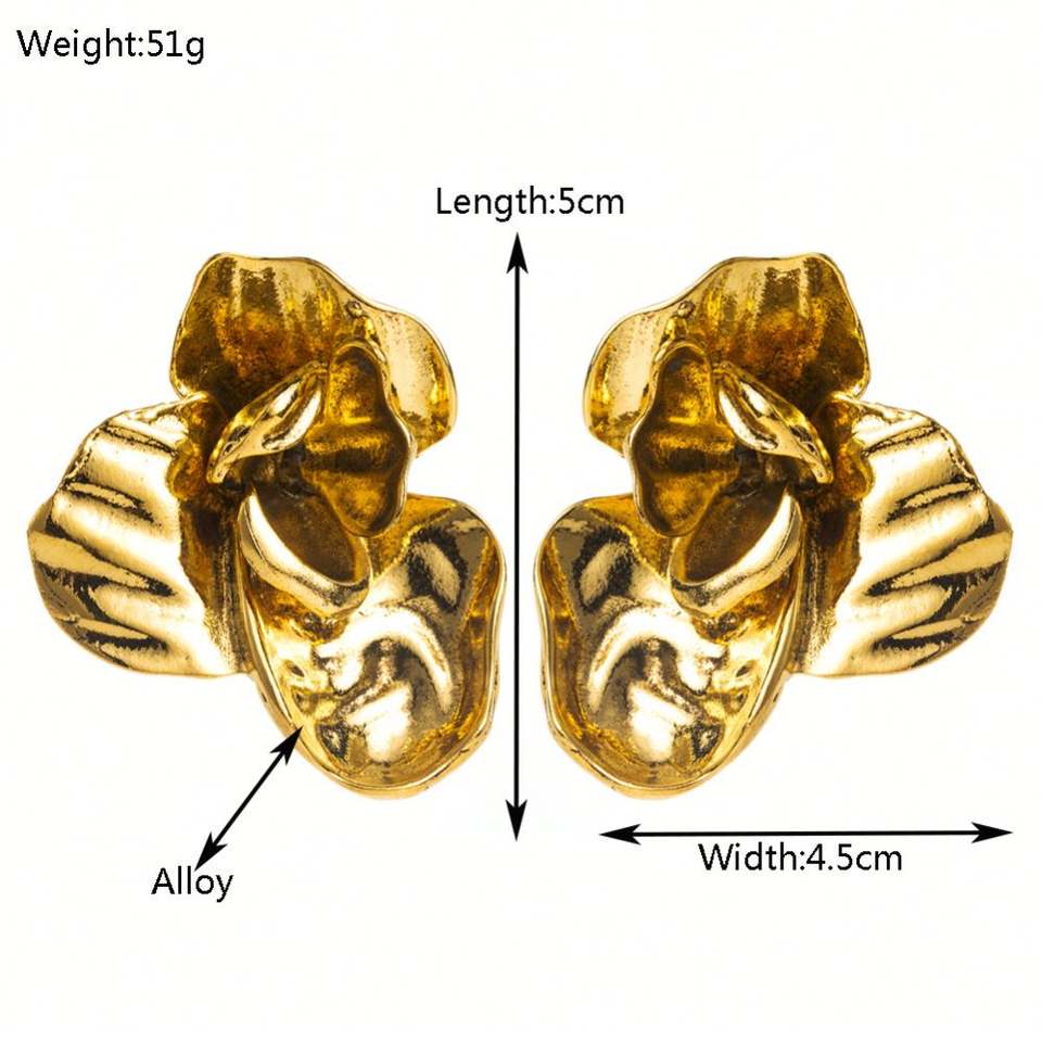 ตุ้มหูสไตล์หนาวจัดแต่งลายดอกไม้ประดิษฐ์เนื้อโลหะ