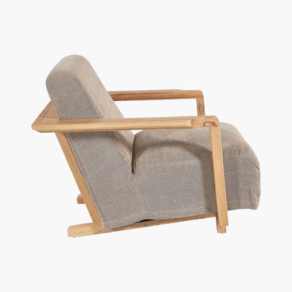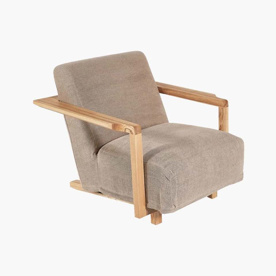 โซฟาเดี่ยวคุณภาพสูง Zaisu ดีไซน์ทันสมัย ทำจากไม้สักแท้ เบาะโฟมหนา ใช้ได้ทั้งภายในและภายนอกอาคาร หุ้มด้วยผ้า เหมาะสำหรับห้องนั่งเล่น