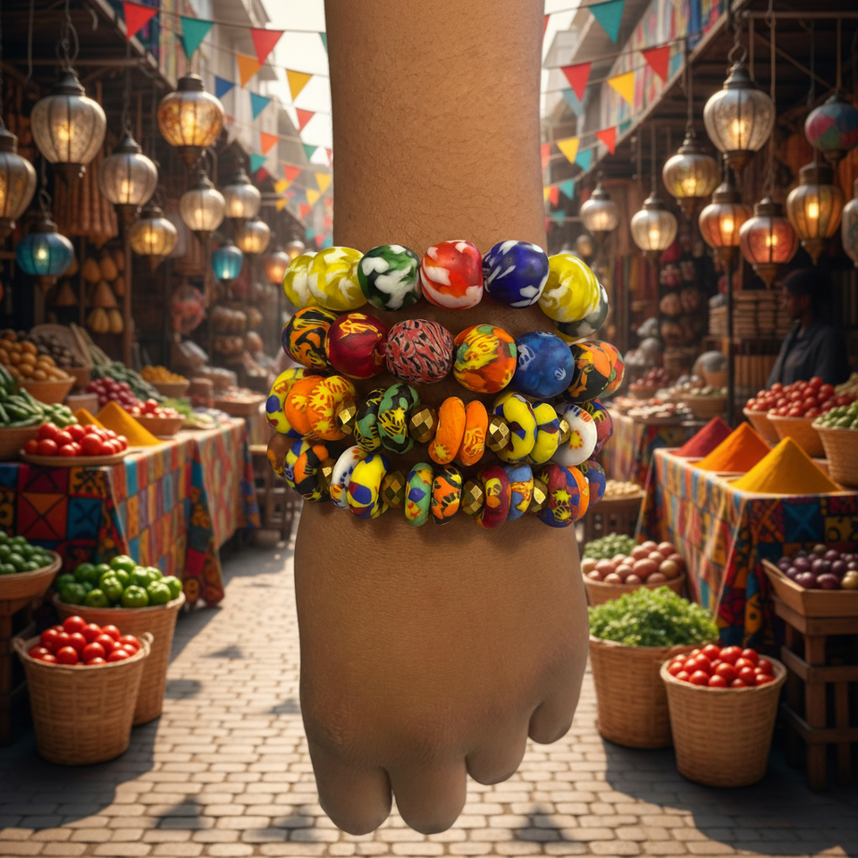 กำไลข้อมือลูกปัดทำมือจากแซมเบีย MNAK แฟชั่นสุดเท่สไตล์ชนเผ่าแอฟริกัน