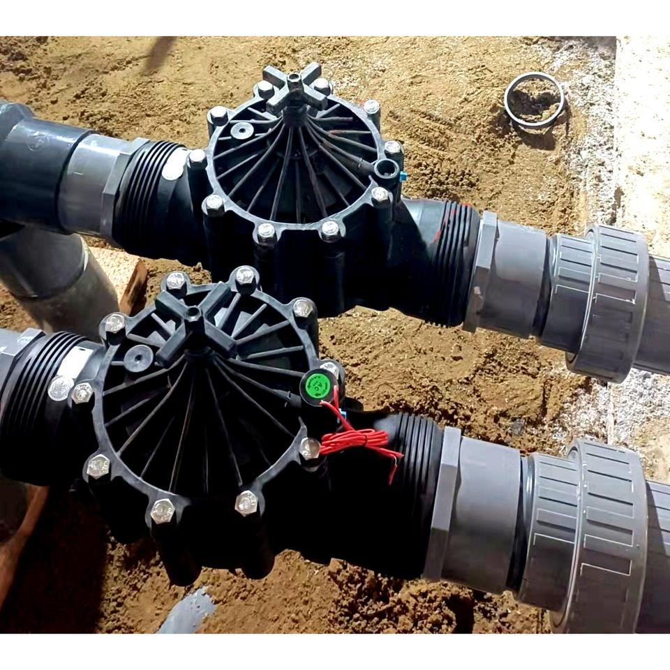 วาล์วโซลินอยด์ควบคุมการไหลของน้ำระยะไกลขนาด 110 มม. ยี่ห้อซันเชน สำหรับระบบชลประทานในฟาร์ม