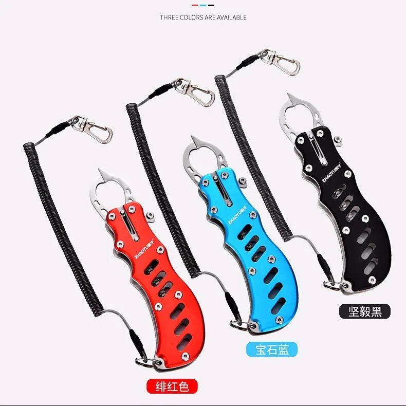 คีมจับปลาสแตนเลสซานอโวน 17 ซม. เครื่องมือตกปลาแบบพกพาสีแดงสีน้ำเงินสีดำ