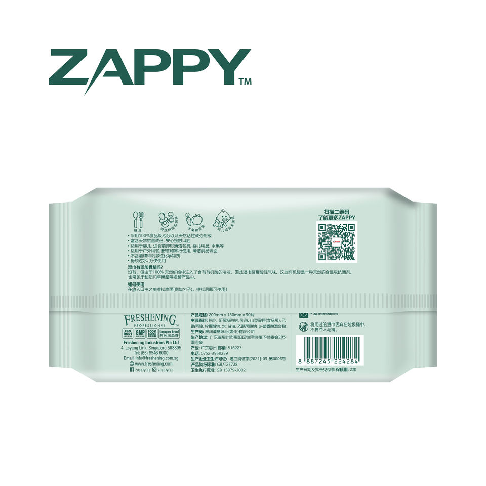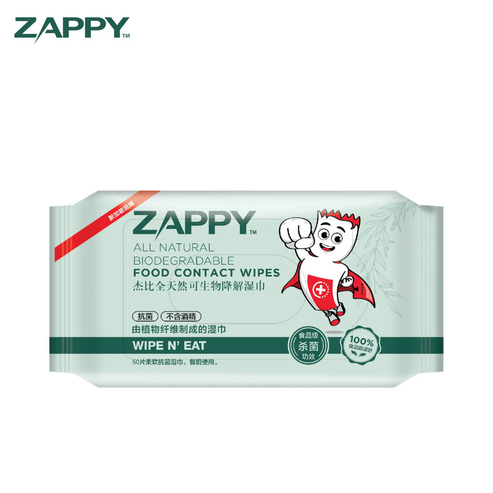 Zappy ทิชชู่เปียกแบบธรรมชาติทั้งหมด50แพ็คผ้าเช็ดสัมผัสอาหารต้านเชื้อแบคทีเรียย่อยสลายได้และเป็นมิตรกับสิ่งแวดล้อม
