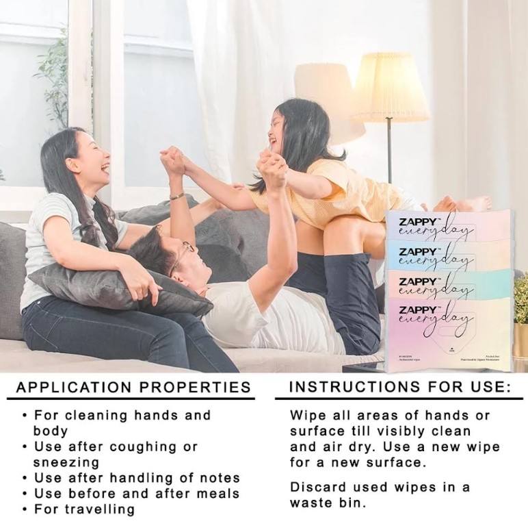 Zappy 15S ผ้าเช็ดทำความสะอาดแบบเปียกออร์แกนิกให้ความชุ่มชื้นต้านเชื้อแบคทีเรียปราศจากแอลกอฮอล์