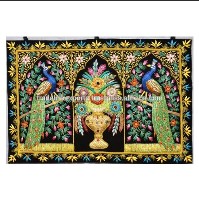 Zari พรมติดผนังปักลายอัญมณีทำด้วยมือลายดอกไม้หรูหราเป็นมิตรต่อสิ่งแวดล้อมผ้าติดเองทรงสี่เหลี่ยมผืนผ้าสำหรับห้อง
