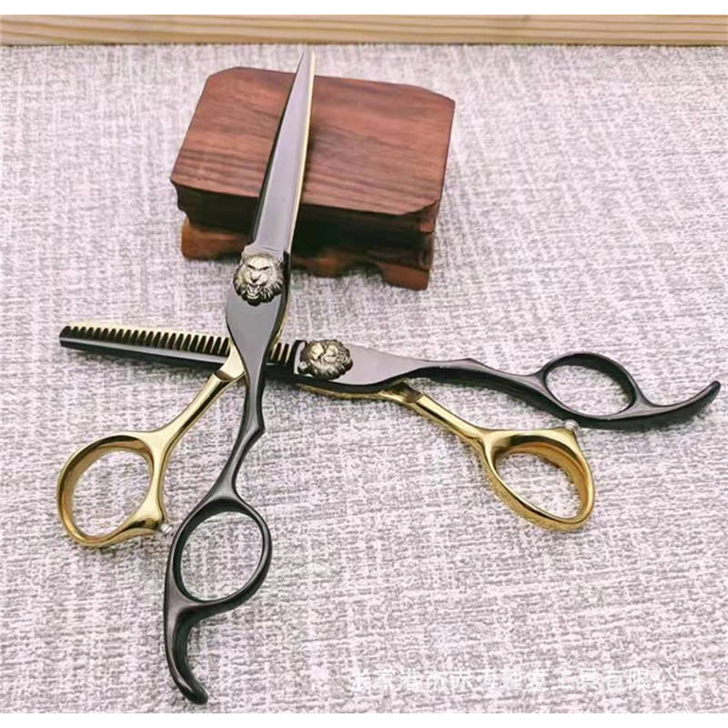 กรรไกรตัดผม Ze ขนาด 6.0 นิ้ว สีดำทอง กรรไกรซอยผม สแตนเลส ด้ามยาว ชุบโครเมียม สำหรับใช้ในงานเสริมสวย