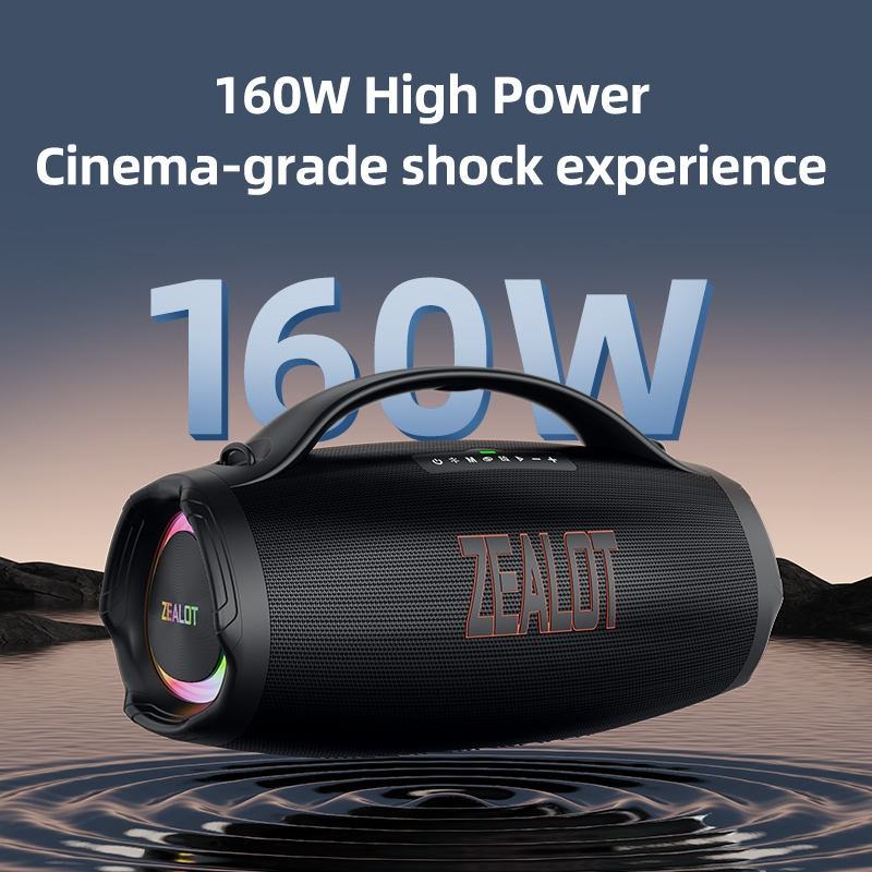 ลำโพง zealot 98 BT5.3พร้อมไฟ LED RGB ขนาด36000mAh แบตเตอรี่160W เอาต์พุตตัวควบคุมปุ่มเสียงสองทางสำหรับโฮมเธียเตอร์และคาราโอเกะ