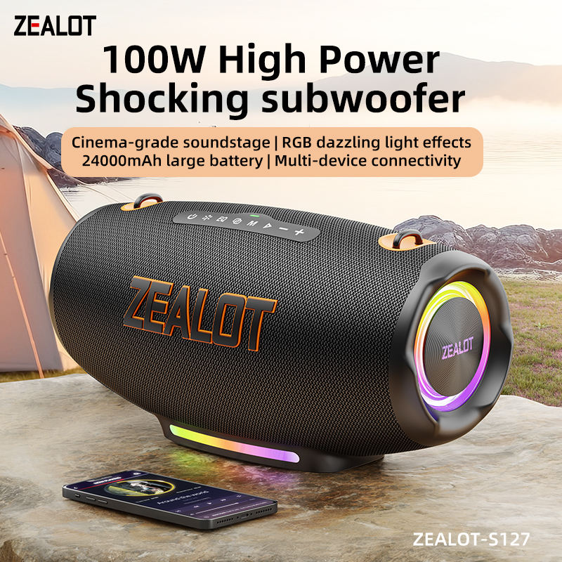 ลำโพงไร้สาย Zealot S127 100W เบสหนักพิเศษ พกพาสะดวก สำหรับปาร์ตี้กลางแจ้ง