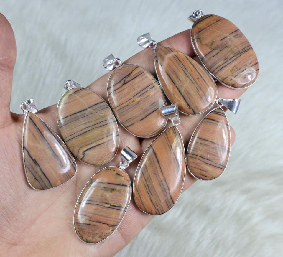 Zebra jasper silver plated pendants