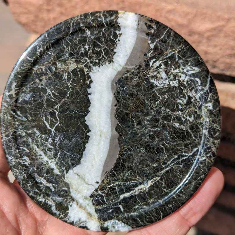 ชุดจานรองแก้วลายม้าลายออนิกซ์ 6 ชิ้น ทำด้วยมือจากหินสีดำ ของตกแต่งบ้านและบาร์สุดหรู