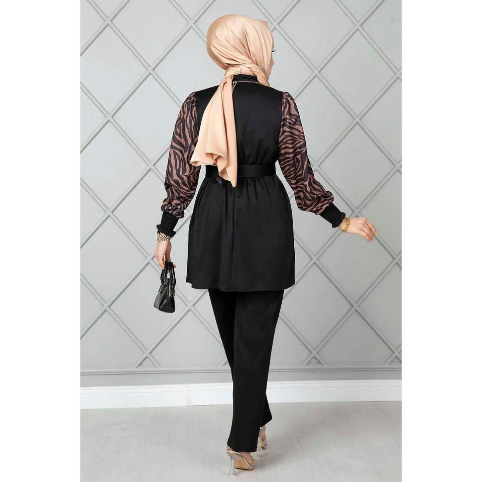 ชุดสูท2ชิ้นแขนลายม้าลายสีดำ-มิงค์