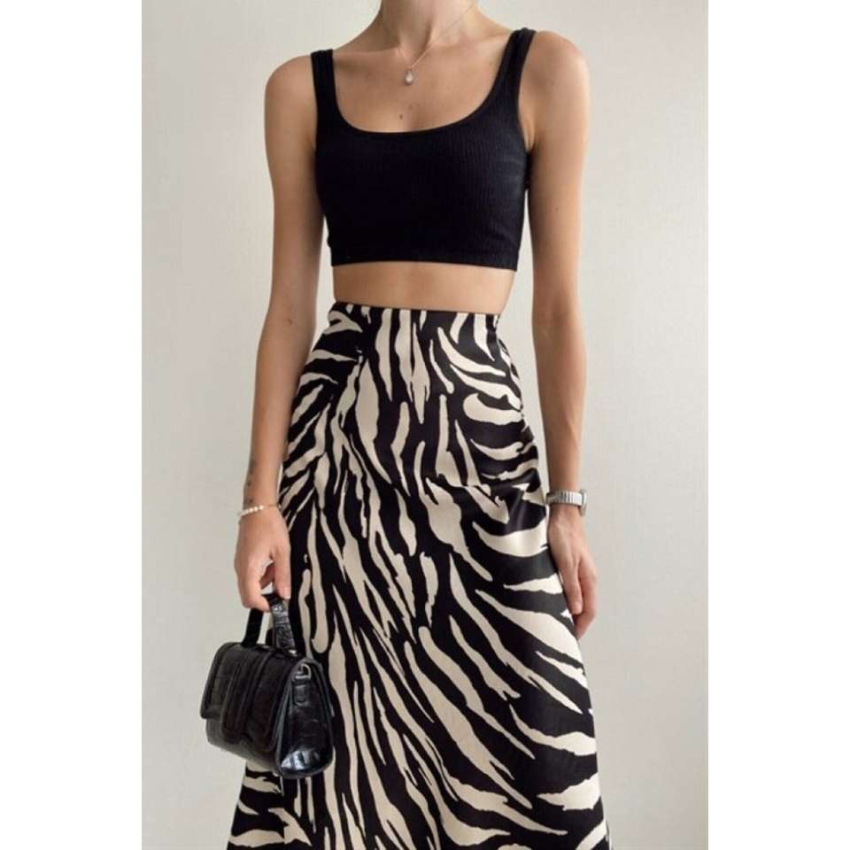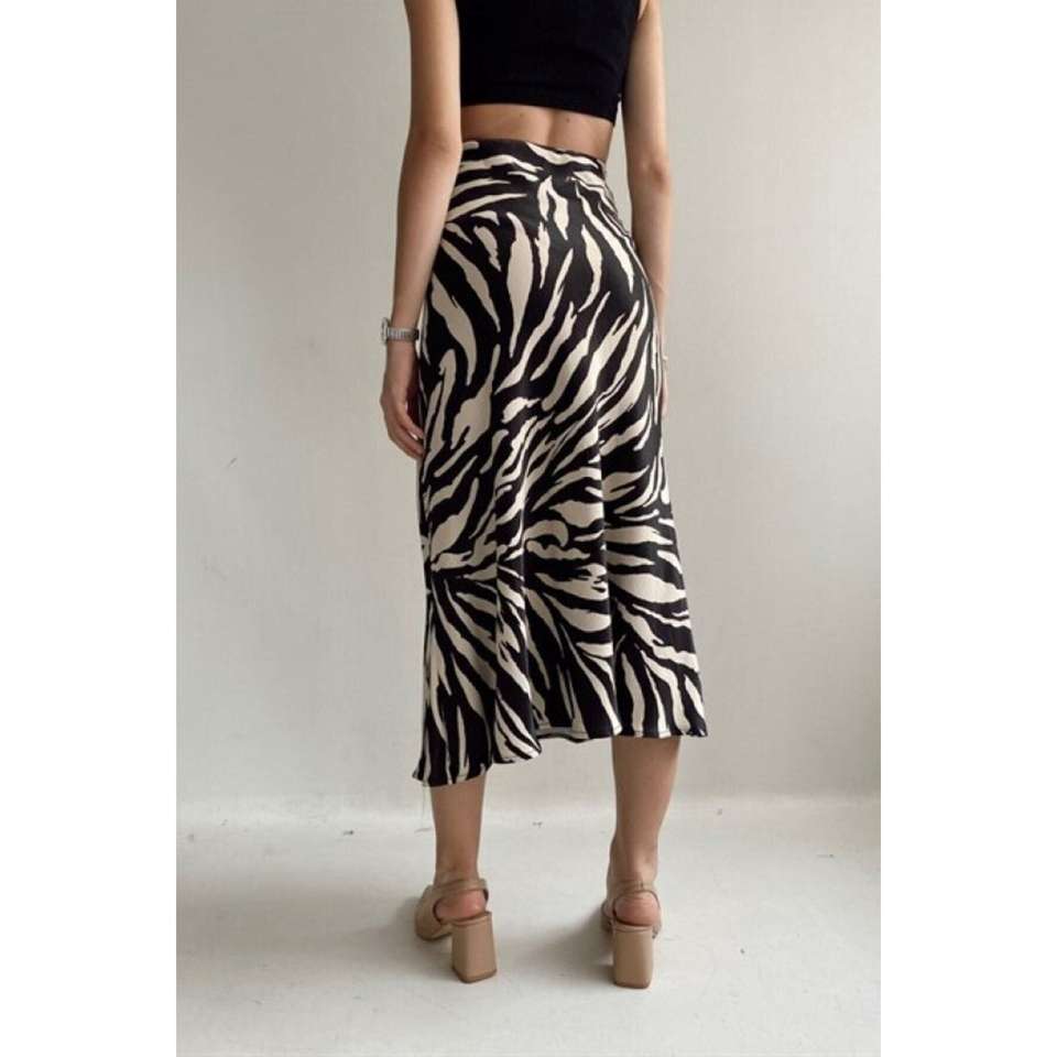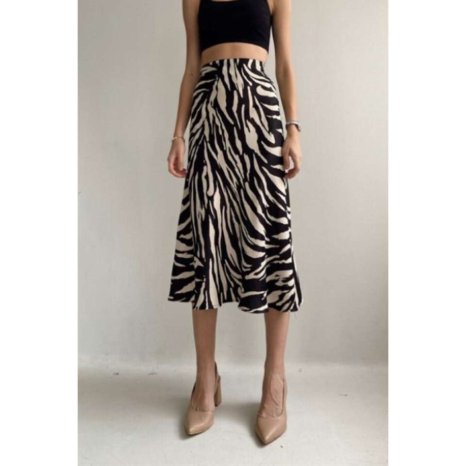 Zebra Pattern Viscose Satin Midi Skirt for Women