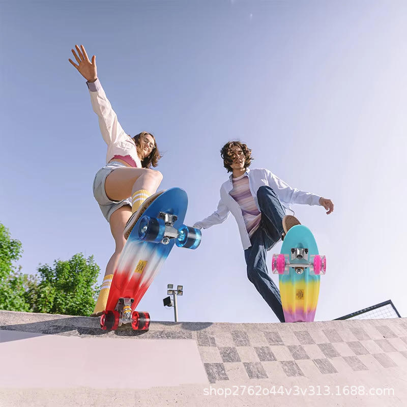 Zebra Sport 22 Inch Mini Skateboard With Pink Blue Yellow Gradient Deck For Youth Beginners Street Use