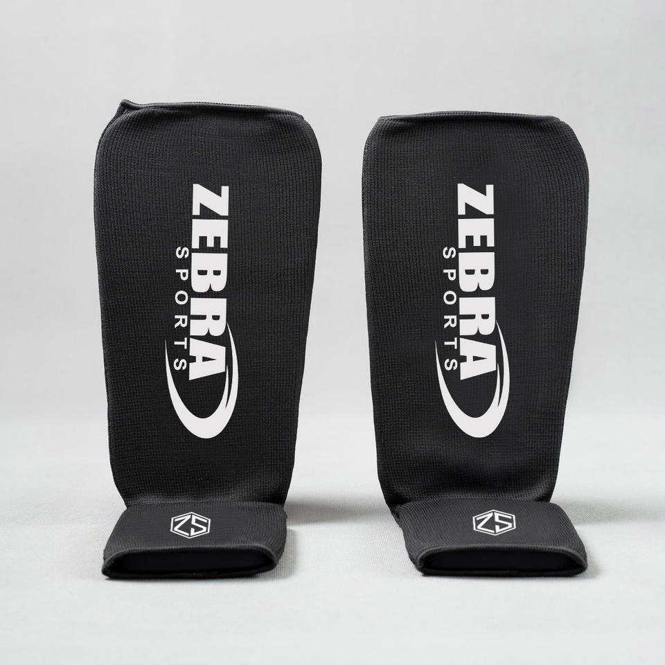 Zebra Sports Black Durable Elastic Boxing Karate MMA Shin Guards with Professional Protection and Hook & Loop Closure Hot Sale