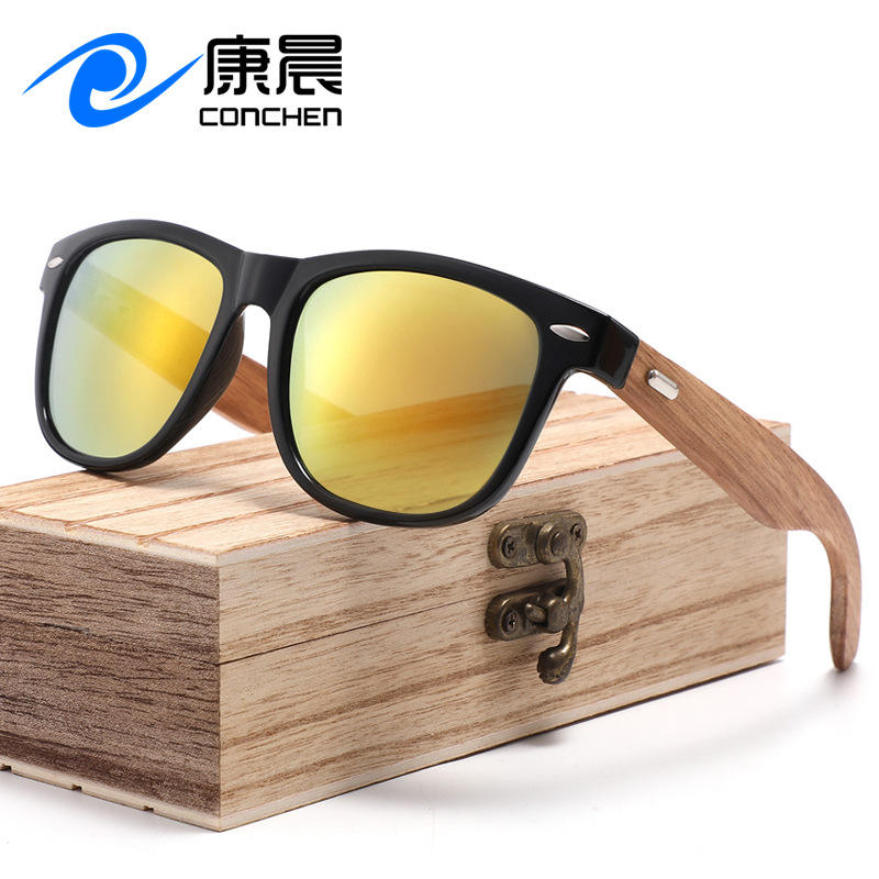 แว่นกันแดดเซบร้าวูดผู้ชาย UV400 กรอบพีซี เลนส์สีดำ แฟชั่นป้องกันแสงแดด ตกปลา ท่องเที่ยวกลางแจ้ง ขาแว่นไม้สไตล์เรโทร