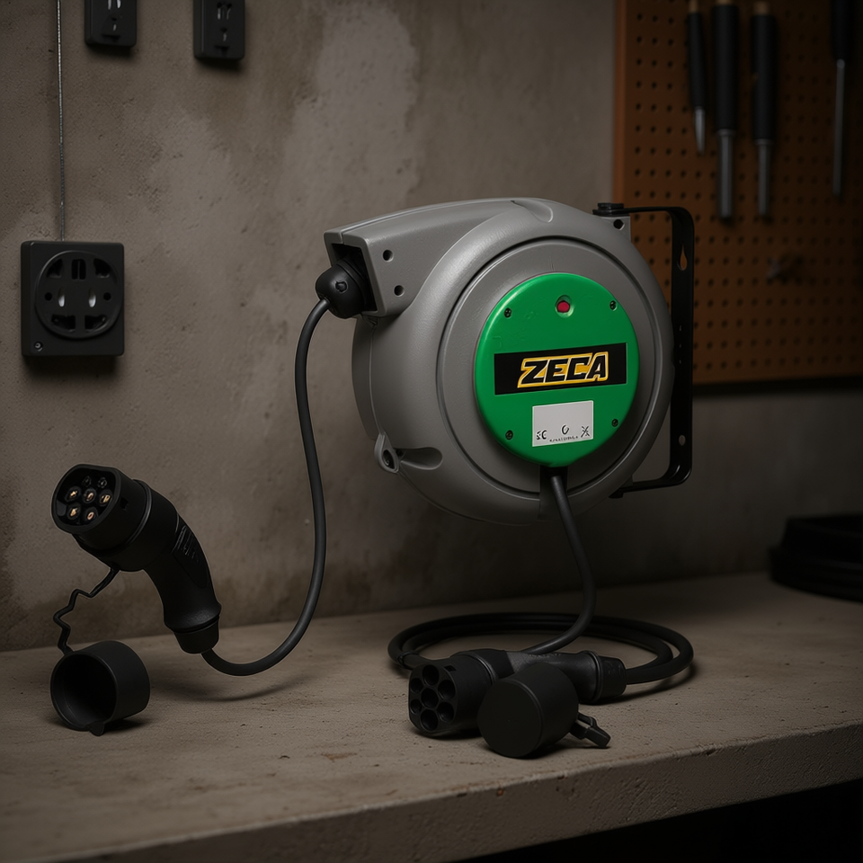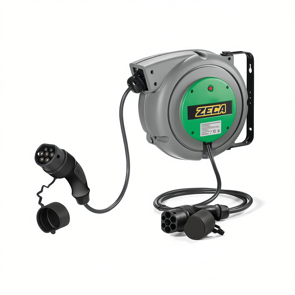 สายพ่วงแบบม้วนเก็บได้ Zeca 5 เมตร 3G2.5+1x0.5 16A แบบ 1-2 พร้อมปลั๊กติดผนัง