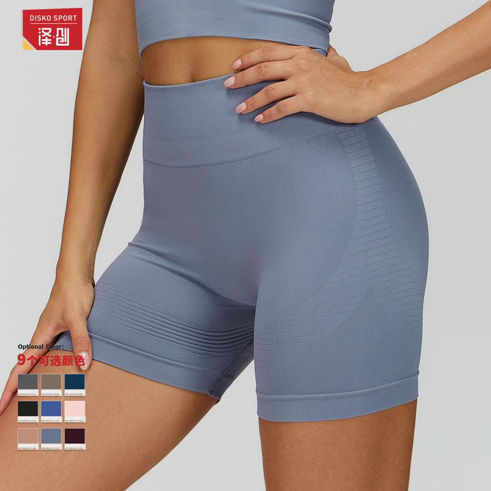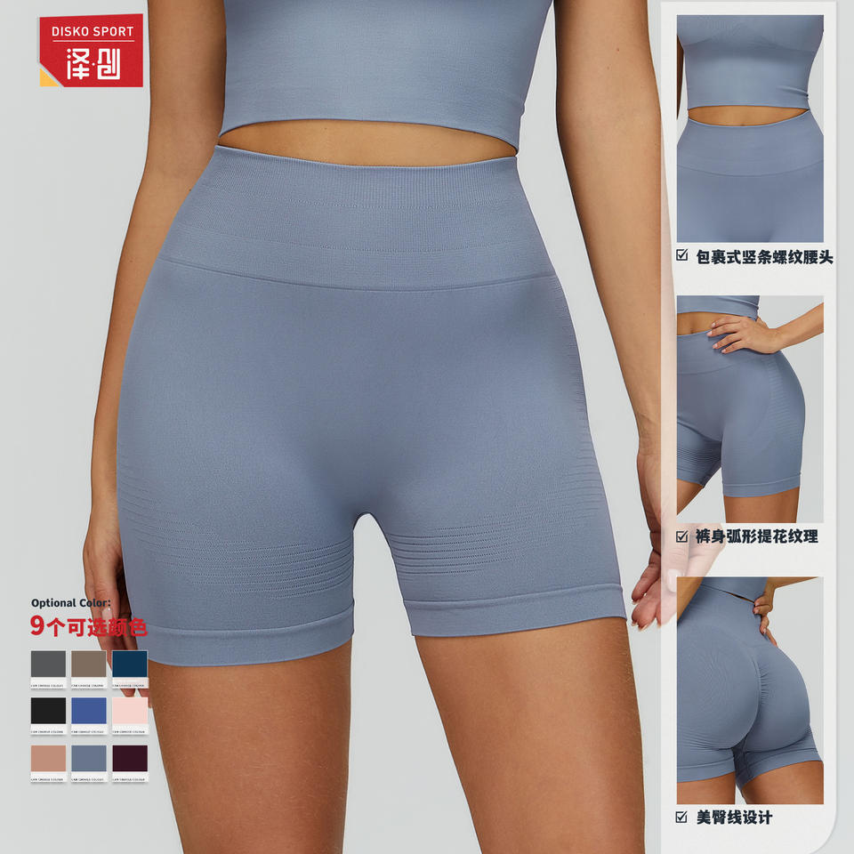 Zechuang กางเกงขาสั้นโยคะผ้าไนลอนสแปนเด็กซ์ถักไร้รอยต่อเอวสูงสำหรับผู้หญิงฟิตเนสออกกำลังกายวิ่ง DDK7725