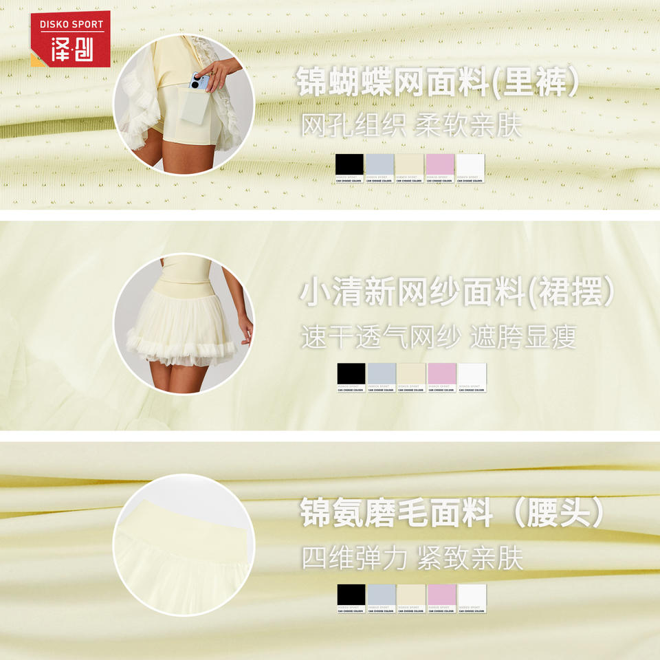เซเชวงกระโปรงเทนนิสเอวสูงสำหรับผู้หญิง ผ้าชีฟอง ทรงเอ สีพื้น ผ้าตาข่าย กระโปรงกีฬาสั้น รุ่น EBQ2033