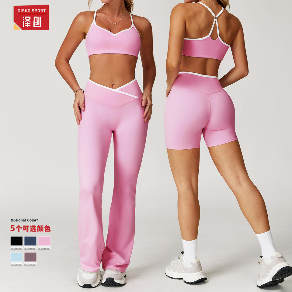 เซชวงชุดโยคะสองชิ้นสำหรับผู้หญิงชุดกีฬาเอวสูงคอวีคอนทราสต์บินดิ้ง ทีที ฟิตเสื้อผ้าออกกำลังกาย TZ9253