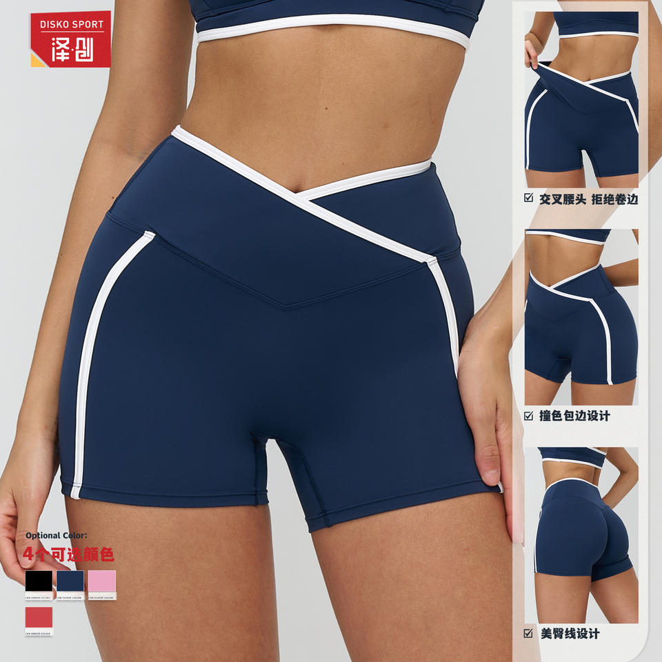 กางเกงขาสั้นโยคะ Zechuang สำหรับผู้หญิง ทรงรัดรูป เอวสูง กางเกงวิ่งออกกำลังกาย สีแดง ผ้ายืดไนลอน 9528