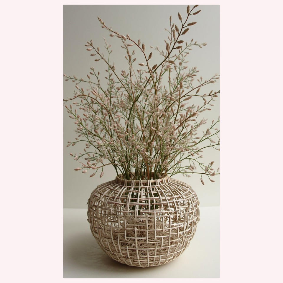 แจกันดอกไม้สไตล์โบฮีเมียนจากสไตล์โบฮีเมียนจากงานหัตถกรรมเส้นใยธรรมชาติที่ทำด้วยมือและหวายจากหญ้าทะเล