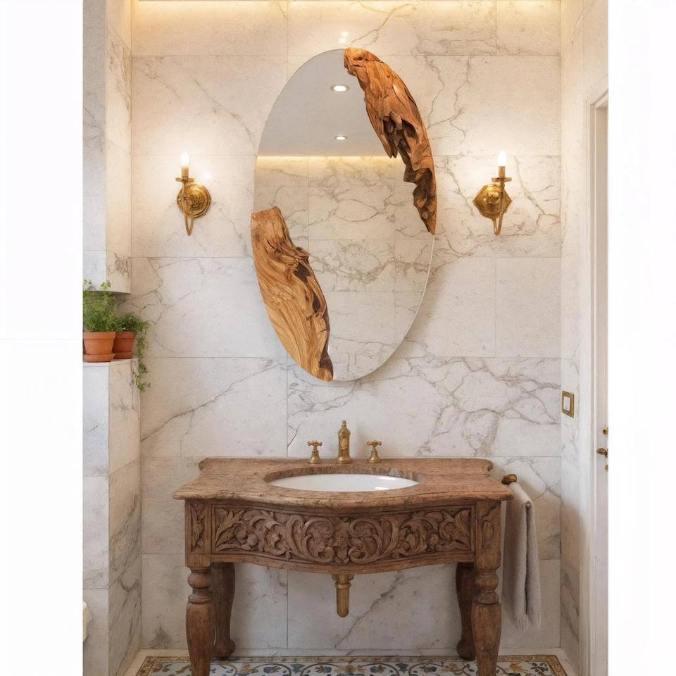 กระจกติดผนังไม้สไตล์เซน ดีไซน์เรียบง่ายสำหรับตกแต่งสปาและสถานเสริมสุขภาพ ขายส่งกระจกแขวนผนัง