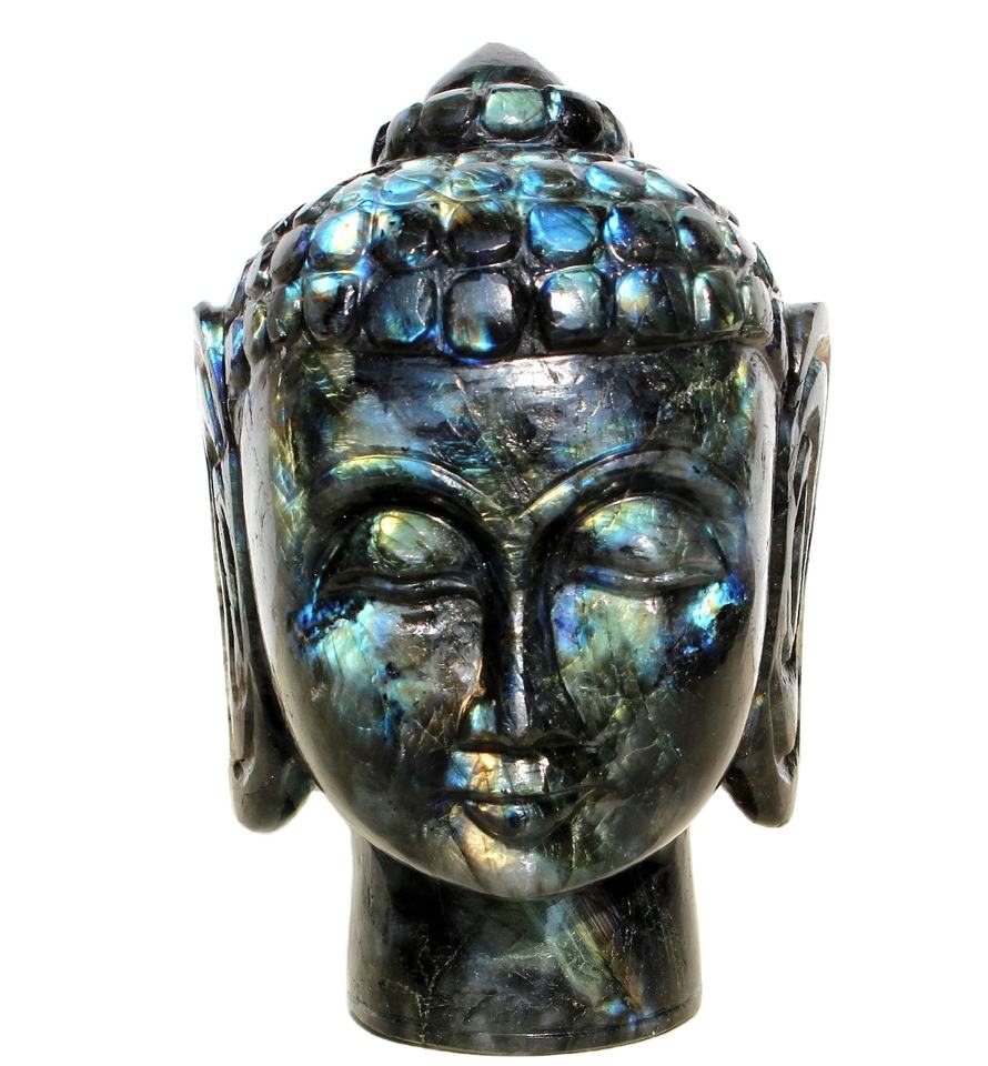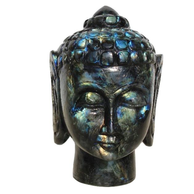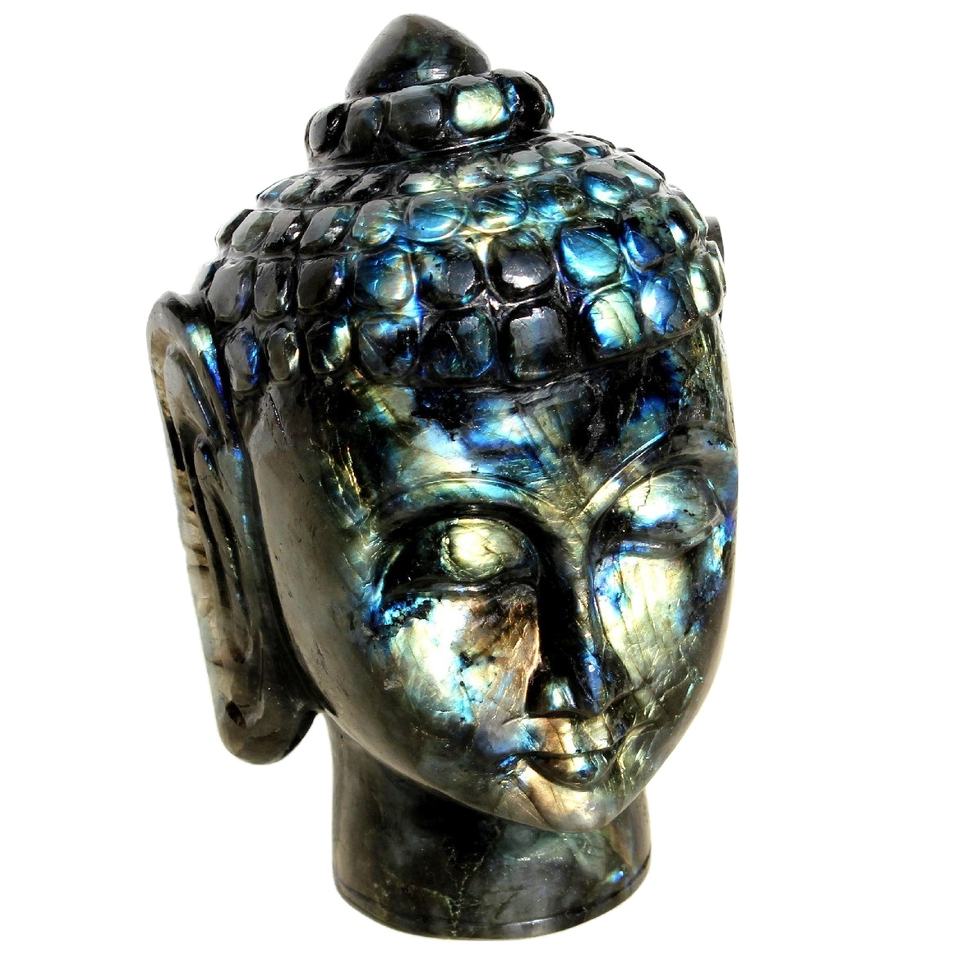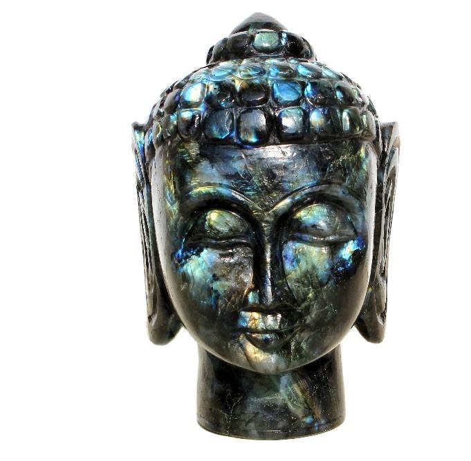 รูปปั้นหัวพระพิฆเนศทำด้วยมือจากธรรมชาติแบบเซนประติมากรรมคริสตัลลาบราดอไรต์กึ่งมีค่า