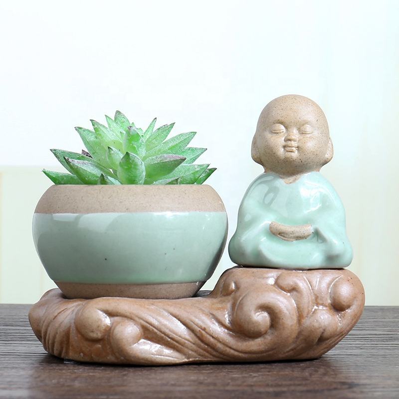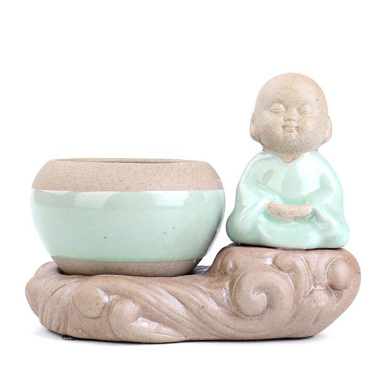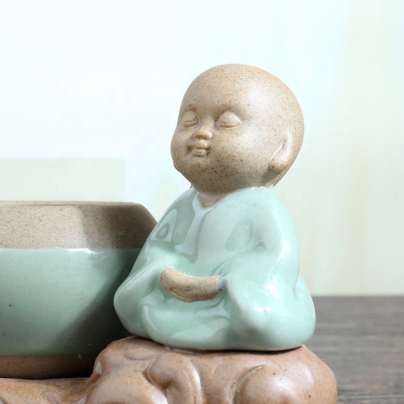 Keywords:Maitreya Buddha old rock mud little monk holed flower pot ceramic pot
